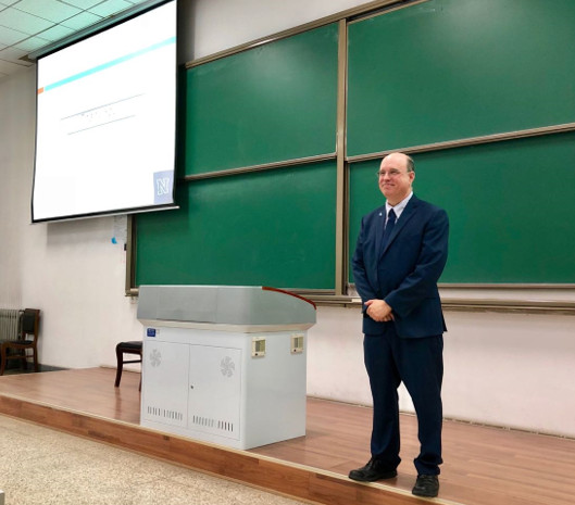 在玛丽女王工程学院孔杰院长以及学校国际合作处的支持与帮助下,6月8日美国加利福尼亚能源中心主任、加州州立大学贝克斯菲尔德分校教授Alan Fuchs教授来访www.28-365365.com并开展了关于“新能源材料”的学术讲座。讲座由学院国际化秘书于鸣鹭主持。