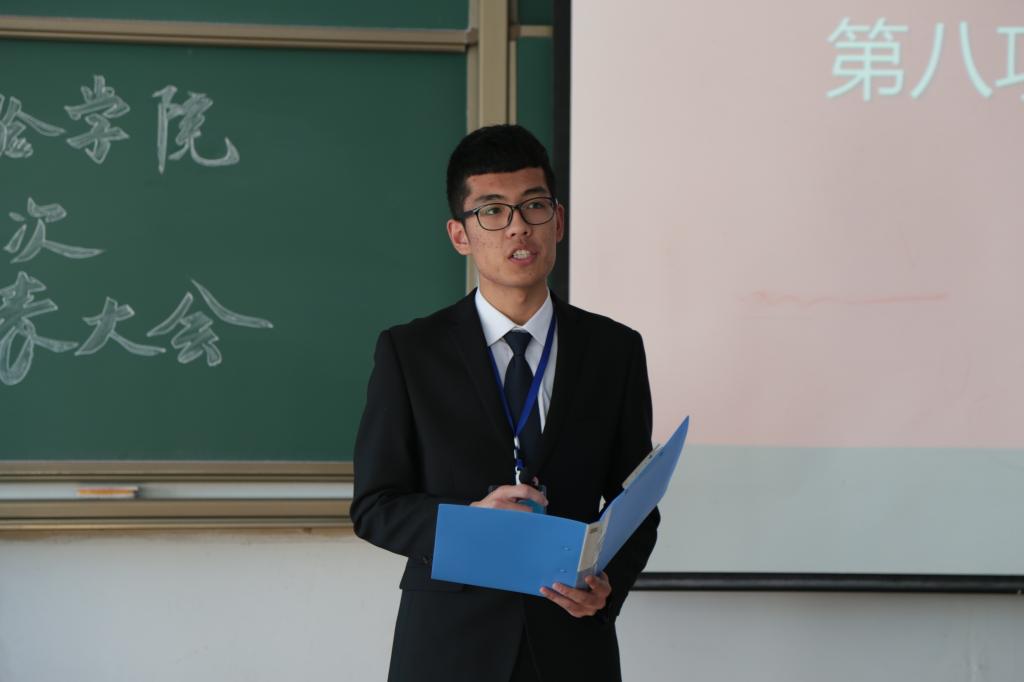 随后,新任学生会主席王宇宁致辞,感谢学院老师和同学们的支持与肯定,他介绍了19届学生会未来工作的部署,表示会在今后的工作中吸取大家提出的批评和建议,认真落实工作,新一届学生会会传承和发扬往届优秀学生干部的精神与作风,力争在接下来的工作中取得佳绩。