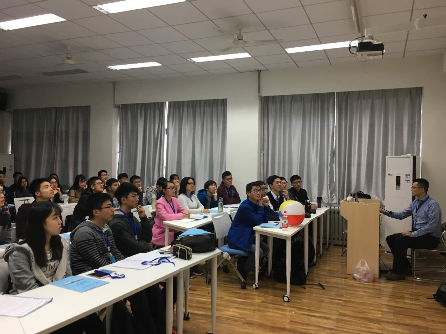 首堂课上,Russell & Frank对比《绿野仙踪》中三种不同领导风格形象,生动地阐述了Servant Leadership(“仆人式”领导力)及其优越性。Bruce Brownlee以他自身在北美丰田汽车工程与制造有限公司的故事为学生引入了“个人孤军奋战不可行,必须依靠团队,成为团队中的一份子,并且每个人都要有自己的原则”的意识。Greg Williams通过分析橄榄球比赛进一步深化了学生对团队精神和团队协作的理解。Jack Sun讲授“如何用一张简历脱颖而出”。授课过程中,理论讲述外,穿插着互动环节、讨论环节、合作环节,极大提高了学生们的兴致,课堂中畅所欲言,气氛十分活跃。在接下来的时间里,学生们还将深入学习“仆人式”领导力、成功领导者必备素质、计划制定等内容,并将进行案例剖析、展示汇报。